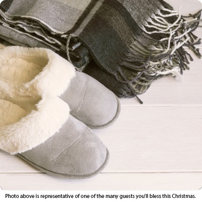 Our Night-Time Noël Pack includes 7+ days of safe shelter in a clean bed with warm blankets, and even pajamas and slippers for a man or woman in our long-term recovery program.