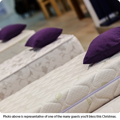 Imagine sleeping on cold, hard concrete – and how wonderful a clean, comfortable bed would feel! Give your Mission a vinyl-covered mattress, pillows, and linens to provide a good night's rest to homeless neighbors who don't have a bed to call their own.